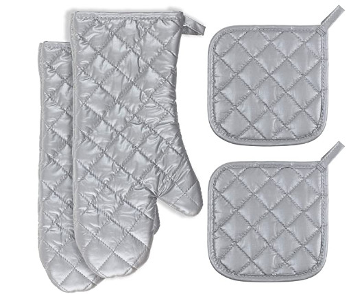 Waterproof Protective Silver Oven Mitts Heat Insulation Customized Patterns Images |
